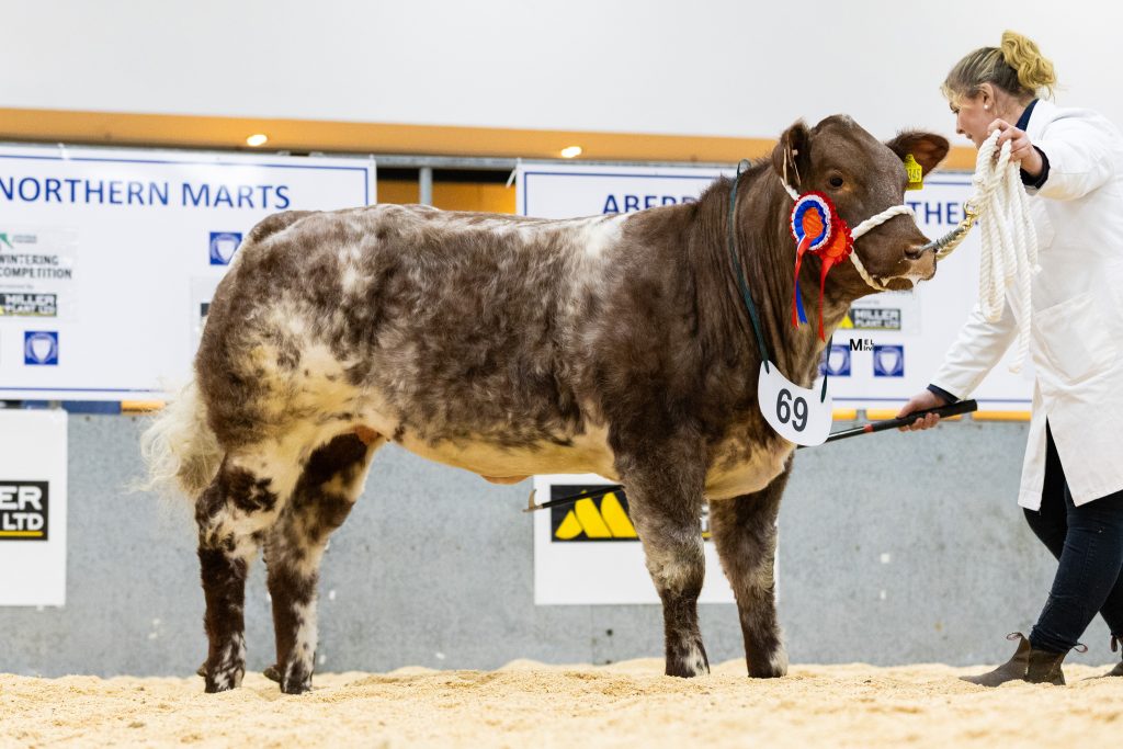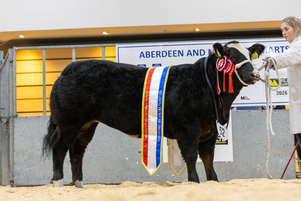 The reserve champion bullock was awarded to a British Blue cross from Amara Nairn, Clashnoir Farm, Ballindalloch, Auchnarrow, which went on to sell for £2,450 to J & J Watt, Stoneyhill, Keithhall, Inverurie.